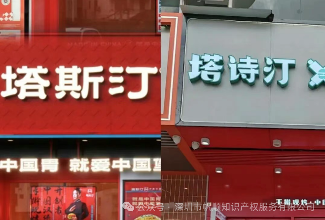 标识与装潢仿冒:在门店装潢、商业标识上使用与“塔斯汀”相同或近似的设计。